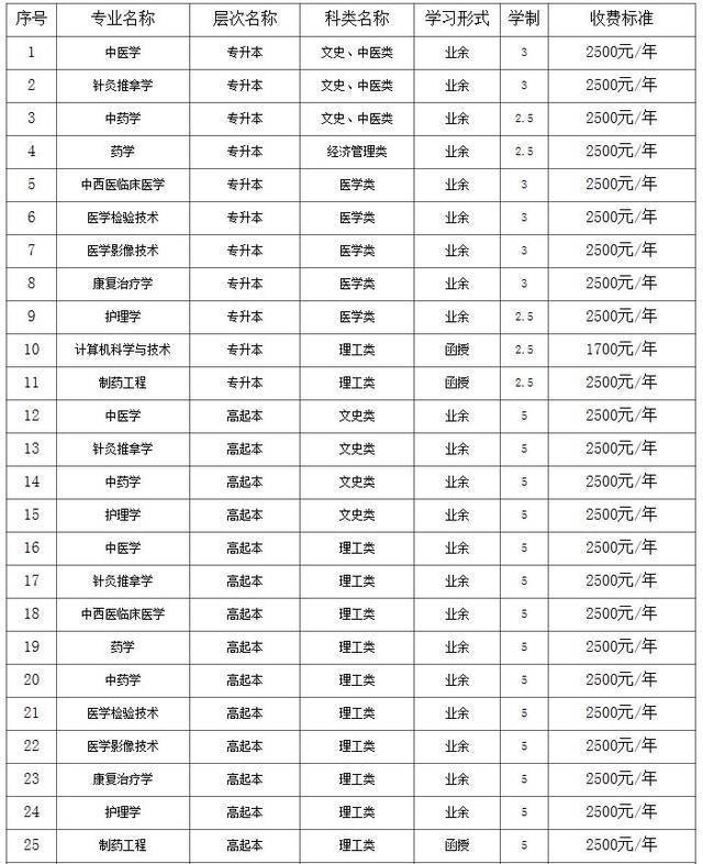 河南中醫(yī)藥大學成人函授教育招生專業(yè)