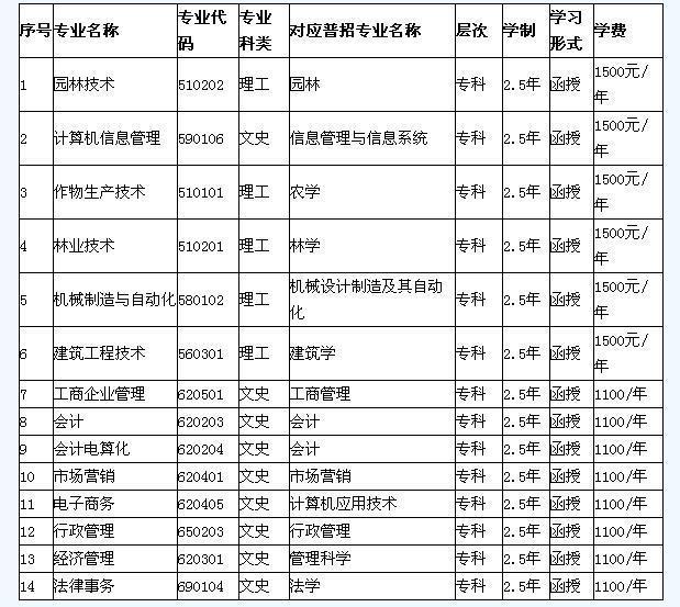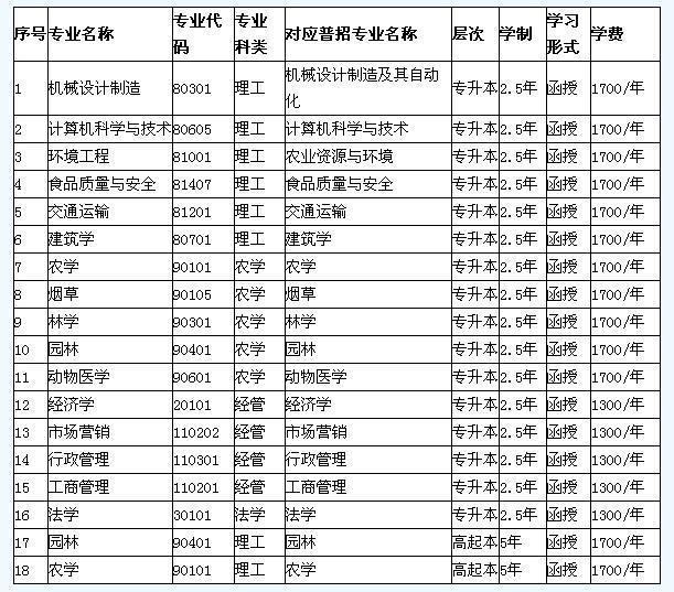河南農(nóng)大高起專專業(yè)