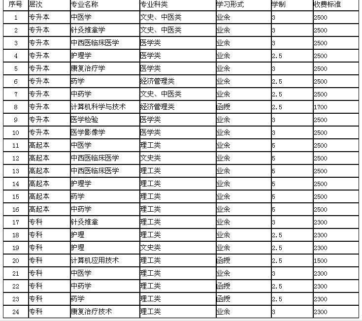 河南中醫(yī)藥大學(xué)成人教育招生專業(yè)