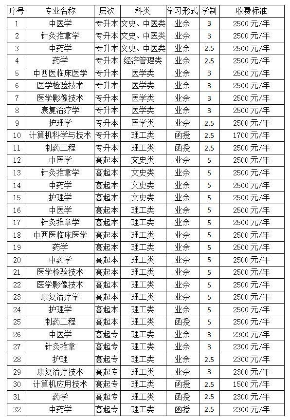 河南中醫(yī)藥大學(xué)成人教育招生專業(yè)計(jì)劃表