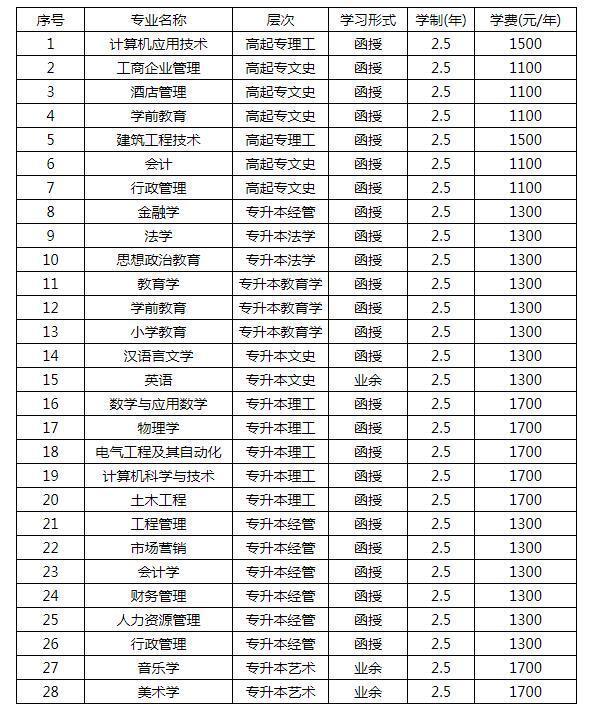 安陽師范學院成人教育開設專業(yè)