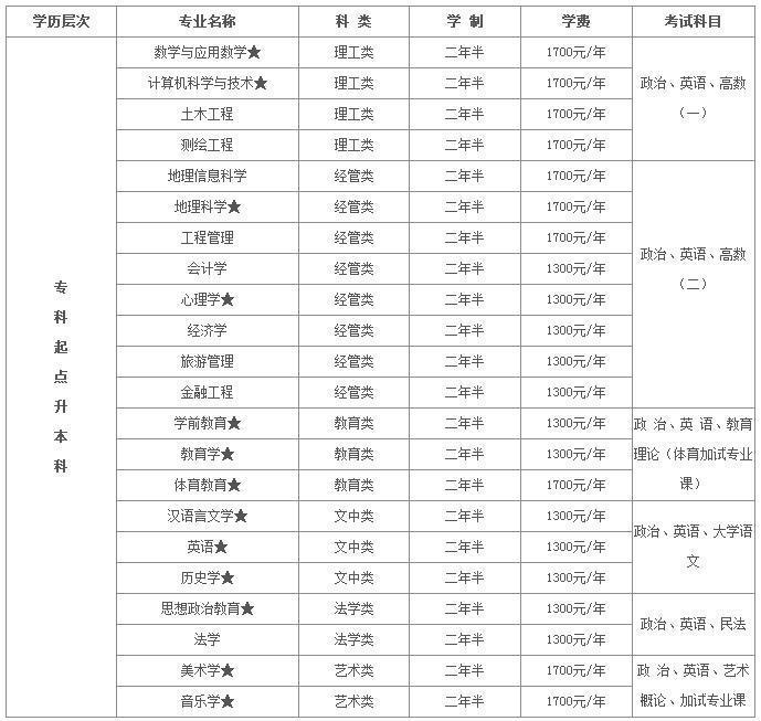 信陽(yáng)師范學(xué)院成人教育招生專(zhuān)業(yè)、考試科目及學(xué)費(fèi)標(biāo)準(zhǔn)