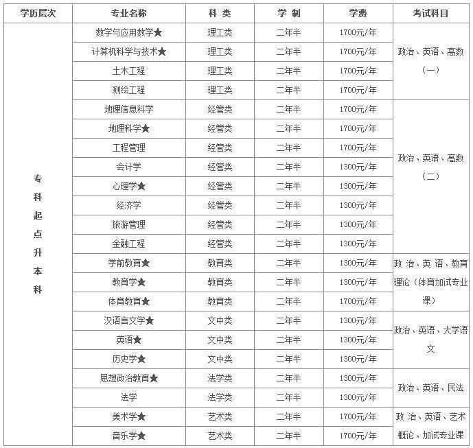 信陽(yáng)師范學(xué)院成人教育招生專業(yè)、考試科目及學(xué)費(fèi)標(biāo)準(zhǔn)