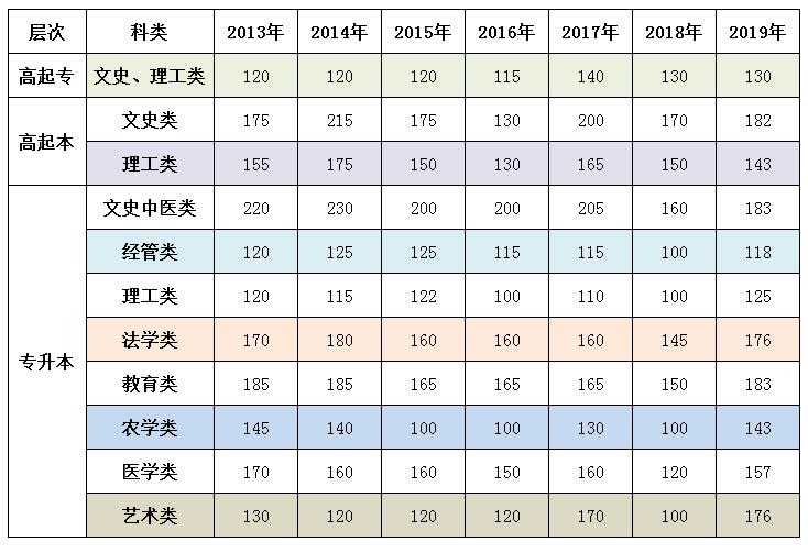 以上是2013年至2020年成人高考錄取分?jǐn)?shù)線對(duì)比分析圖,分?jǐn)?shù)線每年不斷有漲幅,其中2020年分?jǐn)?shù)線有所回落,到2020年各科類(lèi)分?jǐn)?shù)均有漲幅。按照?qǐng)?bào)名人數(shù)的不斷增加,錄取分?jǐn)?shù)線也會(huì)只高不低的,想要通過(guò)參加成人高考獲得大專和本科學(xué)歷的社會(huì)在職人員,要抓住變革的機(jī)遇,著手開(kāi)始備考。