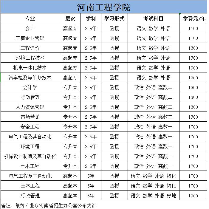 原標題:河南工程學院2020年招生簡章成人高考大專本科考試科目(必看)