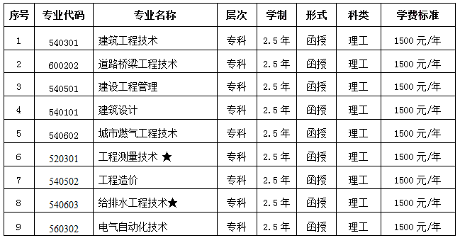 河南城建學(xué)院成人函授教育招生專(zhuān)業(yè)(以河南省招生辦公室公布的招生專(zhuān)業(yè)為準(zhǔn))