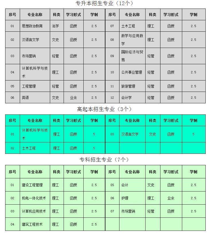 黃淮學(xué)院成人教育招生專業(yè)一覽表