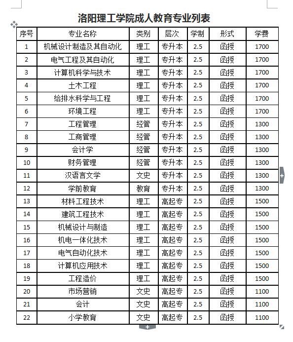 洛陽(yáng)理工學(xué)院函授報(bào)名專業(yè)