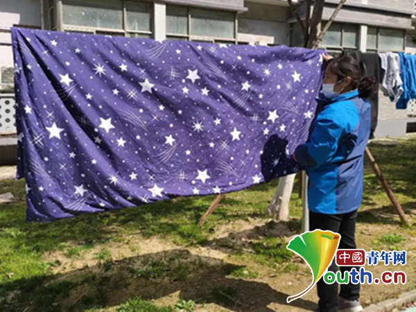 宿管阿姨為同學(xué)們曬被子。受訪者供圖