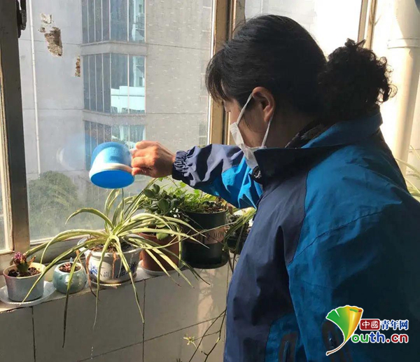 宿管阿姨為同學(xué)們的綠植澆水。受訪者供圖