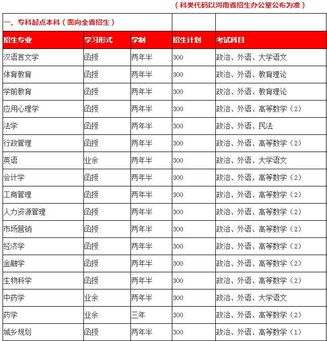 河南大學(xué)成教專升本招生專業(yè)及計劃