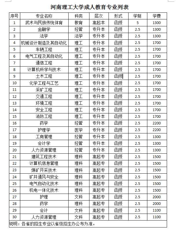 2020年河南理工大學(xué)成人教育招生專業(yè)