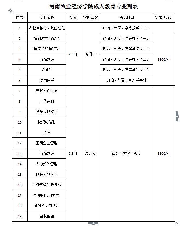 河南牧業(yè)經(jīng)濟(jì)學(xué)院成教大專本科開(kāi)設(shè)專業(yè)