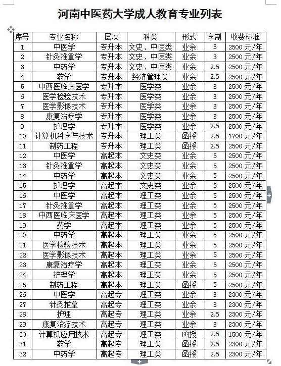 河南中醫(yī)藥大學(xué)成人教育報(bào)考專(zhuān)業(yè)