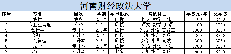 河南財經(jīng)政法大學(xué)函授招生專業(yè)