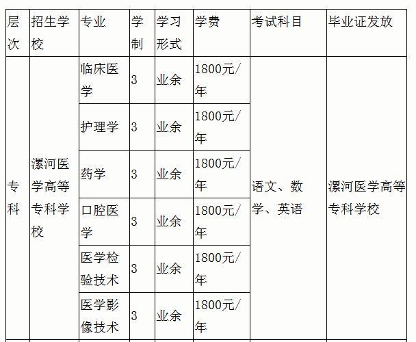 2020年漯河醫(yī)專成人教育招生專業(yè)