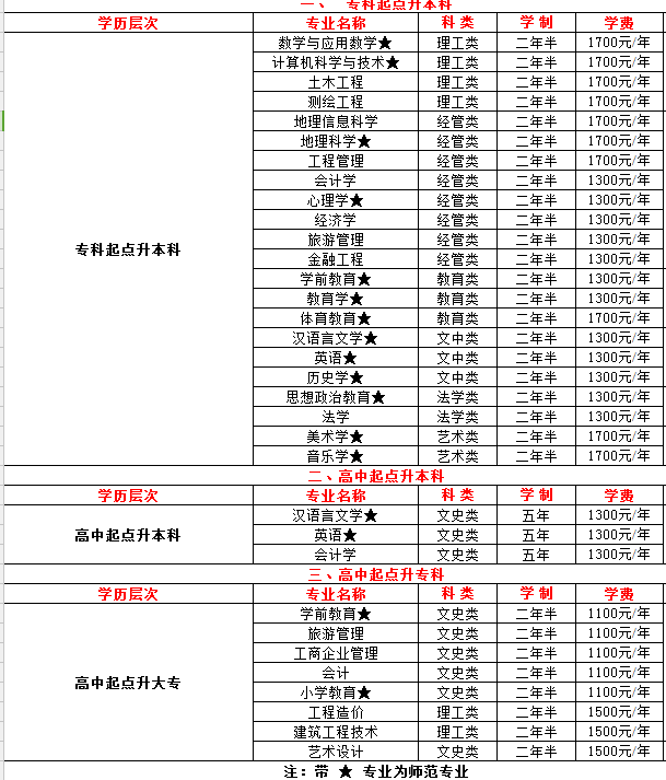 信陽(yáng)師范學(xué)院函授招生專業(yè)