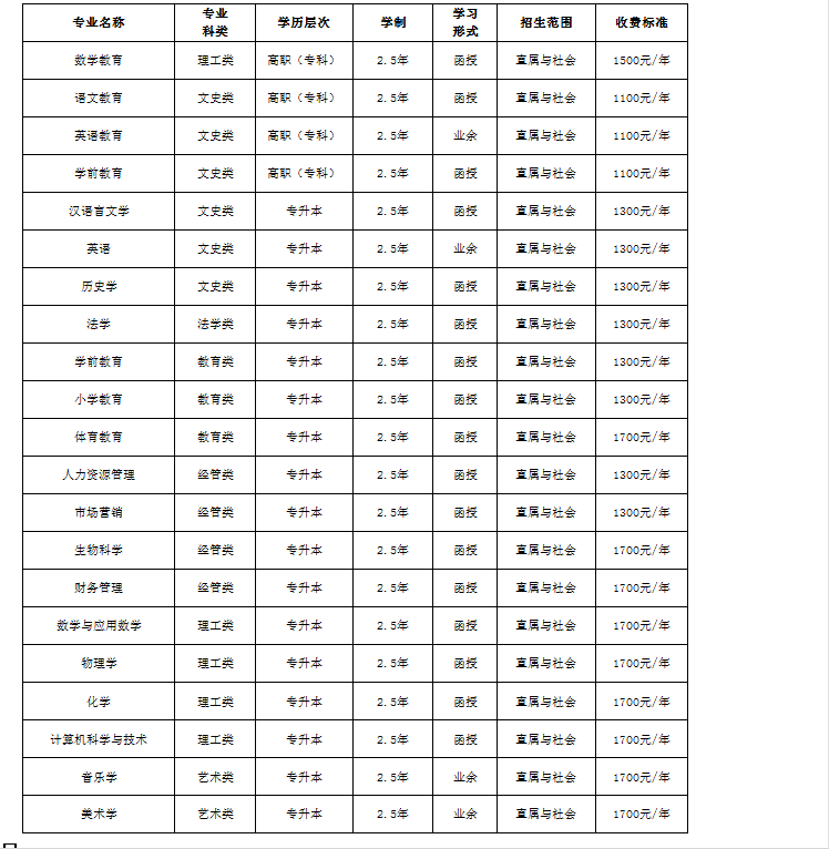 周口師范學院成人函授專升本招生專業(yè)