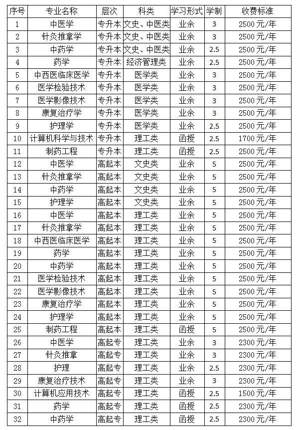 2020年河南中醫(yī)藥大學(xué)成人教育招生專業(yè)計(jì)劃表