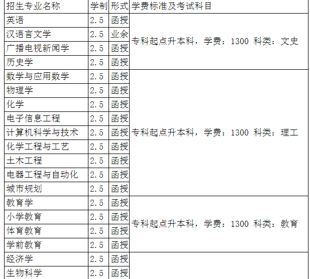 2020年商丘師范學(xué)院成人教育招生專業(yè)一覽表