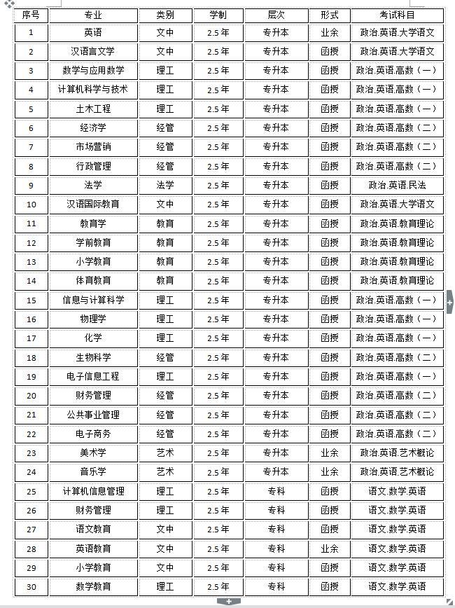 2020商丘師范學(xué)院成人教育開設(shè)專業(yè)