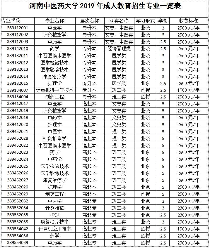 2020年河南中醫(yī)藥大學(xué)成人教育中醫(yī)學(xué)專業(yè)明細(xì)
